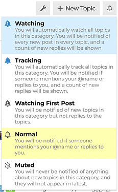 Auch pro Kategorie kannst du ein Benachrichtigungslevel setzen. Das geht entweder in deinen Einstellungen – oder direkt auf der Kategorie-Seite über die Benachrichtigungs-Steuerung oberhalb der Themenliste (rechts).